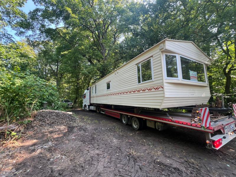 Montáž domku na podmáčeném podloží. S pomocí traktoru se vše zdárně podařilo.