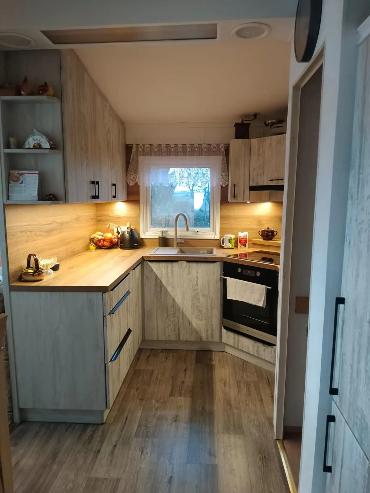 Po roce od montáže jsme se vrátili k zákazníkovi v Benátkách nad Jizerou a rozdíl je znatelný. Oproti původnímu stavu po usazení domu přibyla nová předsíň, zateplení a úpravy interiéru, díky kterým je dům dnes komfortnější, praktičtější a lépe připravený pro běžné užívání. Největší posun je vidět ve vstupní části a celkovém dojmu z interiéru – dům působí útulněji a více „dotaženě“. Dodatečné zateplení navíc výrazně zlepšilo tepelný komfort. Porovnání s montáží před rokem krásně ukazuje, jak se dá mobilní dům postupně vylepšit podle potřeb majitele. Montáž před rokem: https://www.bach-mobilnidomy.cz/