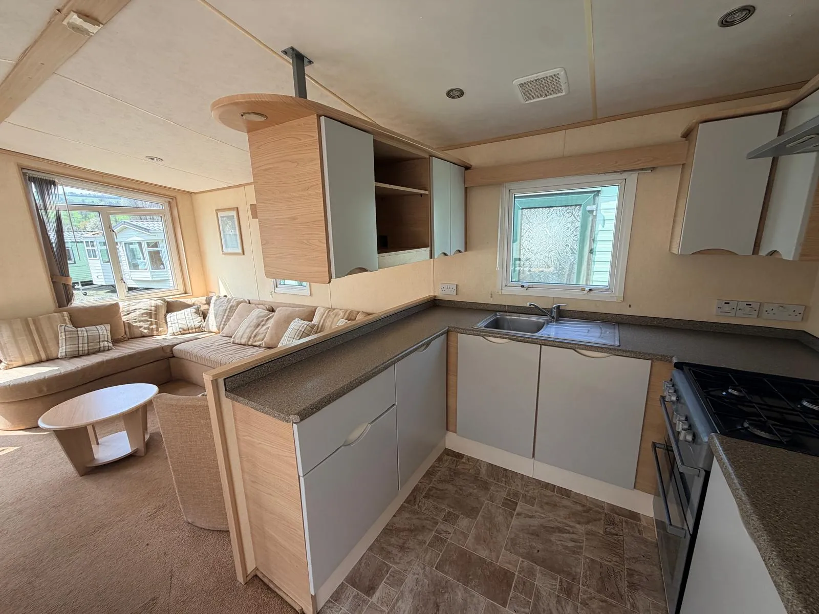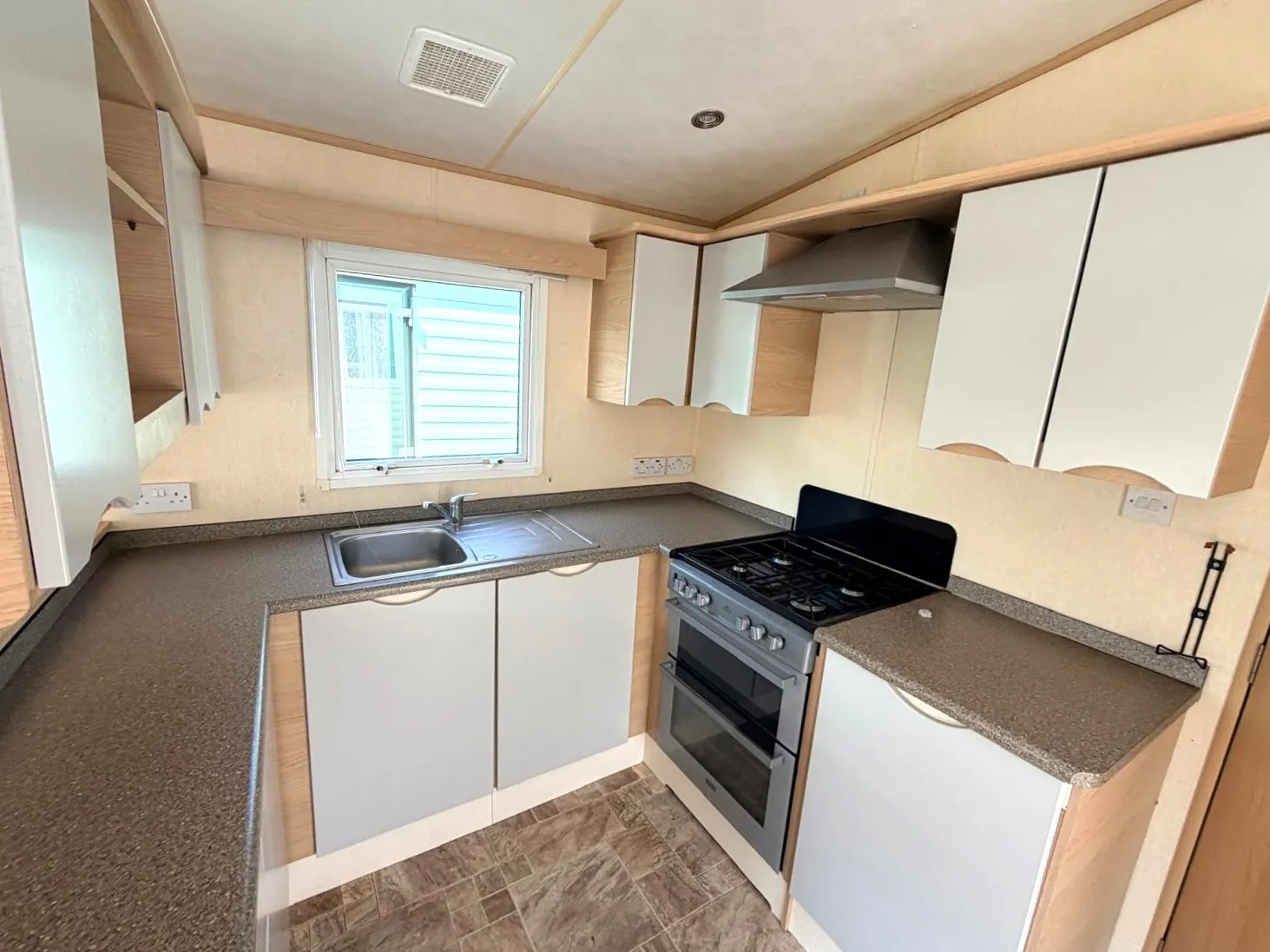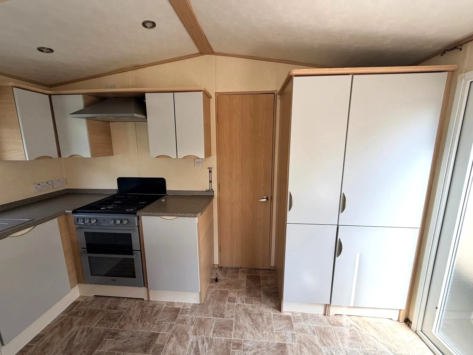 A praktikus és hangulatos, egész évben használható ABI Focus 3+kk mobilház kellemesen kialakított belső terével, rengeteg napfényével és funkcionális elrendezésével lenyűgözi a vendégeket a kényelmes élet és kikapcsolódás érdekében. A hőszigetelő dupla üvegezésű műanyag ablakoknak és a minden szobában található központi gázfűtésnek köszönhetően a hidegebb évszakban is kényelmes a tartózkodás. A mobilháznak egy második bejárata is van a ház elejéről, míg a főbejárat a ház oldalának közepén található, ami biztosítja az elrendezés praktikus és kényelmes használatát. Belépés után a világos nappaliba jutunk, amely zökkenőmentesen kapcsolódik a mindennapi használatra praktikusan berendezett konyhához. A konyha olyan gépekkel van felszerelve, mint a hűtőszekrény, fagyasztó, gázsütő, mikrohullámú sütő és rozsdamentes acél mosogató. A fő hálószobában egy franciaágy és egy tárolóhelyiség található a kényelmes használat érdekében. A második szoba alkalmas gyerek- vagy vendégszobaként két ággyal. A zuhanyzós és WC-s fürdőszoba a folyosóról közelíthető meg. A vízmelegítést gázkazán biztosítja. A mobilház általános elrendezése praktikusnak, szellősnek tűnik, és kellemes környezetet kínál a mindennapi használatra.