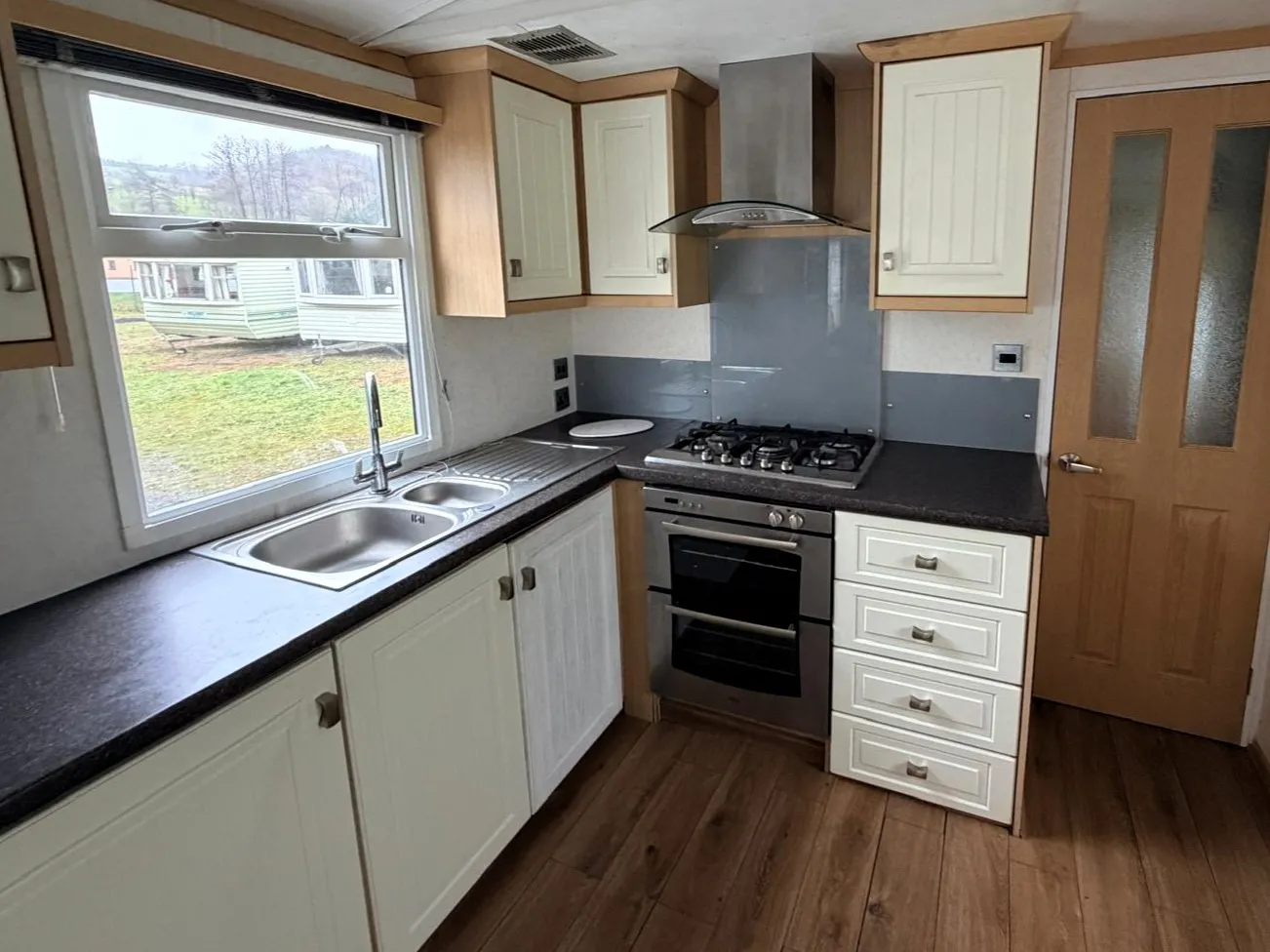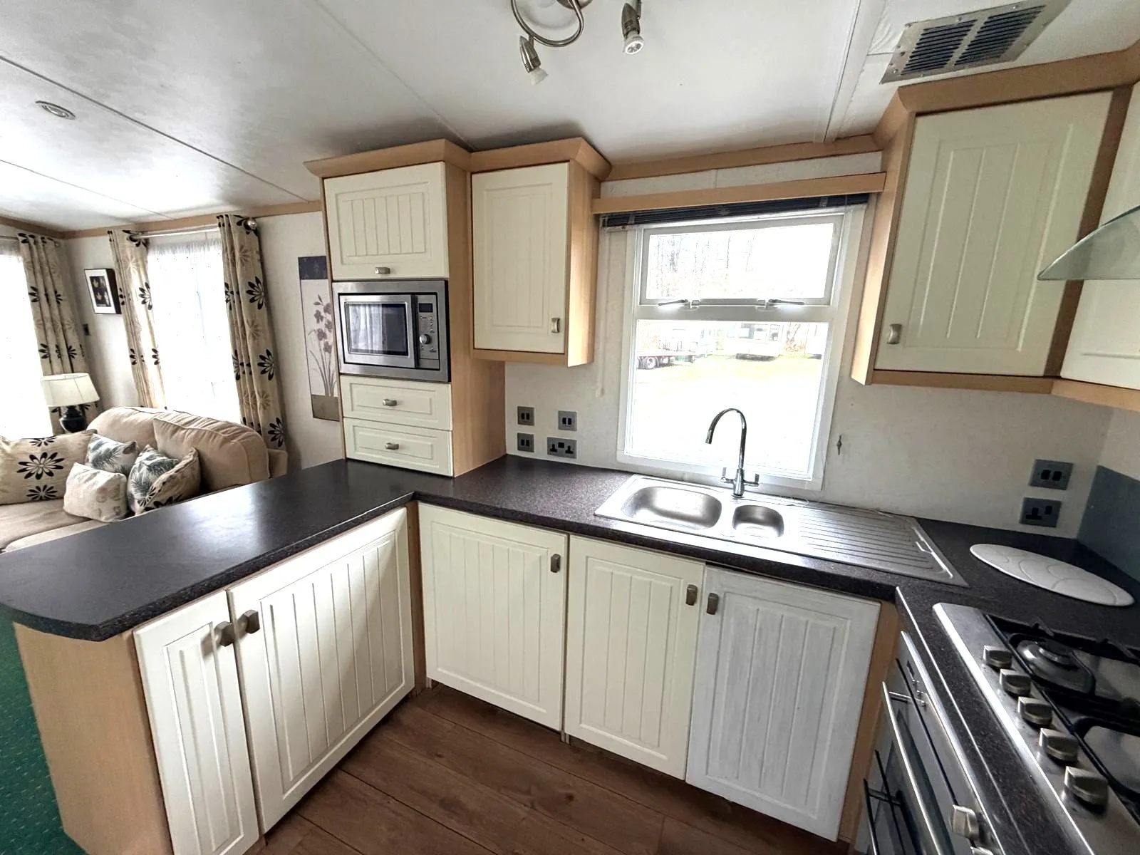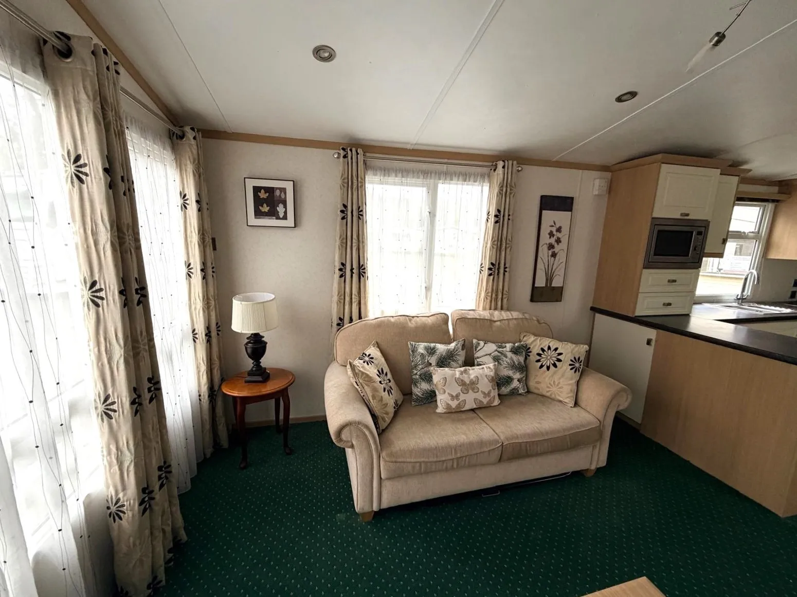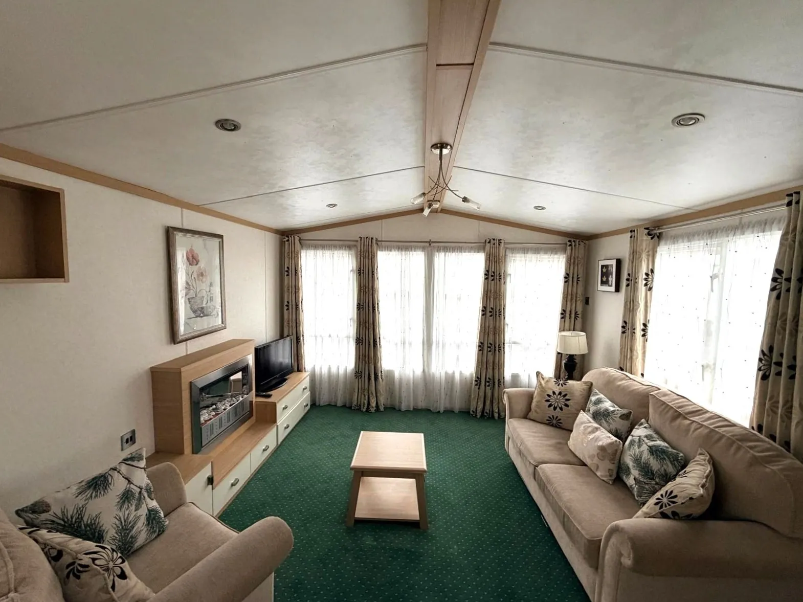 A gyönyörű, teljesen felszerelt, egész évben használható Carnaby Rosedale mobilház, melynek mérete 12 × 3,7 m, kellemes belső terével, praktikus elrendezésével és azonnal használatra kész felszereltségével lenyűgözi a vendégeket. Világos nappalival rendelkezik, amely a konyhához és étkezőhöz kapcsolódik. Az egész éves hőkomfortot a földszinten található gázkazánnal működő központi fűtés biztosítja, amely minden helyiségbe elosztva radiátorokkal rendelkezik. A ház kerületén műanyag keretes, hőszigetelő dupla üvegezésű műanyag ablakok találhatók, amelyek hozzájárulnak a jobb hőszigeteléshez és a zajcsökkentéshez. A higiéniai létesítmények közé tartozik egy zuhanyzóval, mosdóval és WC-vel felszerelt fürdőszoba, valamint egy külön WC. A csendes rész egy nagyobb hálószobából és két különálló szobából áll, összesen akár 6 fő befogadására alkalmas. Összességében egy kényelmes és hatékonyan megtervezett ház, amely egész éves használatra alkalmas.